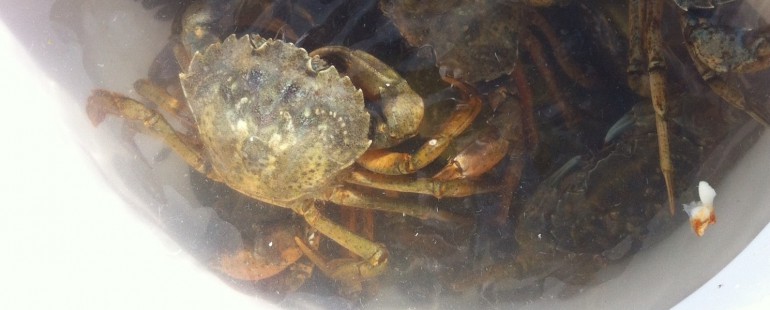 De barnbarn vi hade med var i åldrarna 2-9 år och kunde tillsammans fiska krabbor, bada, samla snäckor och göra andra strandfynd.